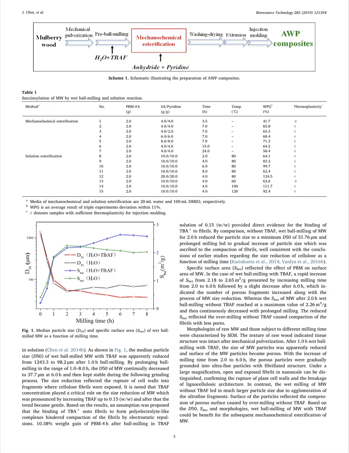 Mechanochemical esterification of waste mulberry wood by wet Ball-milling with tetrabutylammonium fluoride