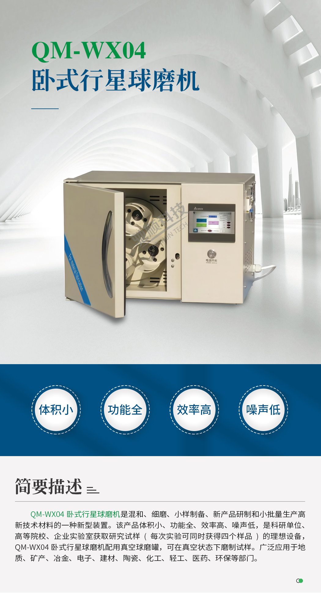 了解更多關(guān)于QM-WX04臥式行星球磨機(jī)產(chǎn)品詳情請致電400 600 8390,我們將為您全方位解答關(guān)于QM-WX04臥式行星球磨機(jī)產(chǎn)品詳細(xì)信息,包括產(chǎn)品功能介紹、使用方法等。