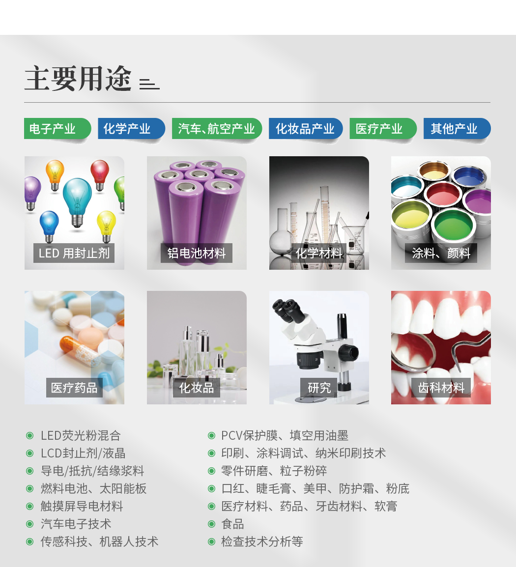 VPDM300行星式真空攪拌脫泡機一款行星式真空離心混料機,可以用于混合各種液體或粉末材料。樣品材料可以是納米粉,導電陶瓷,電池粉末或漿料,碳納米管,氧化物粉末和金屬粉末等。行星式真空攪拌脫泡機廣泛應用于LED、LCD、電子元器件、納米粉體材料、精細化工材料、印刷電子材料、電子封裝材料及新能源材料等高、尖、精領域產品的材料的混合攪拌領域,如熒光粉、硅膠、銀漿、鋁漿、粘合劑、油墨、銀納米顆粒、銀納米線、LED/OLED/SMD/COB導電銀膠、絕緣膠,RFID印刷導電油墨及各向異性導電膠ACP、薄膜太陽能電池用導電漿料、PCB/FPC用導電油墨等等,從液態(tài)到固態(tài)、液態(tài)與液態(tài)、固態(tài)與固態(tài)物質的攪拌均可。